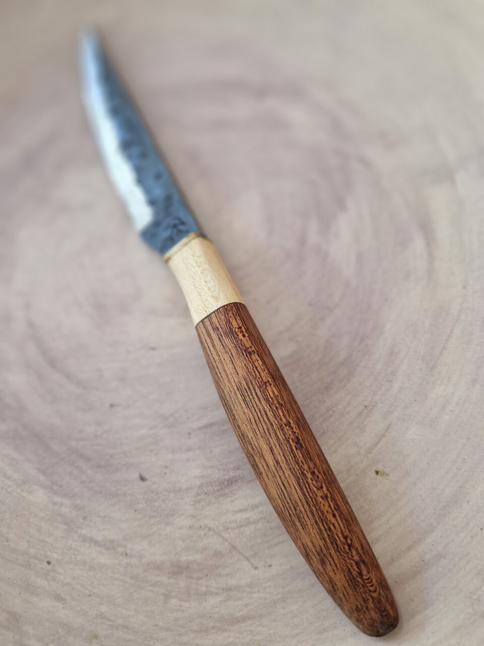Handgemaakte keukenmessen, vervaardigd uit hoogwaardig Europees carbonstaal, bieden een unieke combinatie van vakmanschap en functionaliteit. Het productieproces begint met de zorgvuldige selectie van dit robuuste materiaal, dat bekend staat om zijn uitstekende snijprestaties en duurzaamheid. Na de vorming van de messen worden ze naar een gespecialiseerd bedrijf in Tilburg gestuurd, waar een nauwkeurig hardingsproces plaatsvindt. Dit zorgt ervoor dat elk mes zijn optimale hardheid en taaiheid bereikt. Vervolgens worden de messen in detail geslepen, afgewerkt en voorzien van beschermende lagen, waardoor ze niet alleen prachtig ogen, maar ook klaar zijn om de uitdagingen van het dagelijkse keukenwerk met gemak aan te gaan.